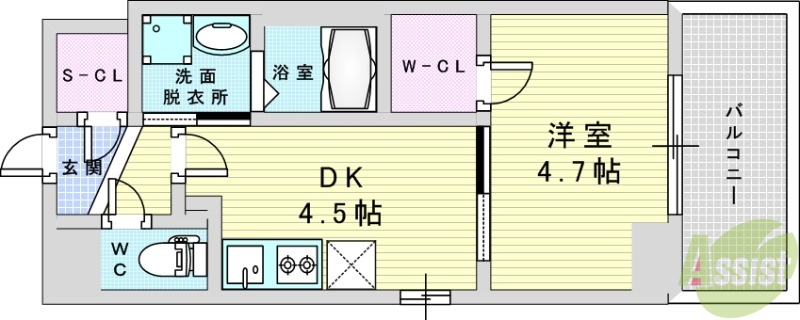 | 間取り詳細 | 洋4.7 DK4.5 | 構造 | 鉄筋コン |