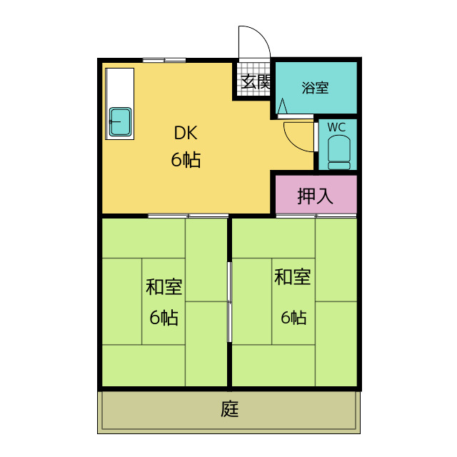 南向きで日当たり良好な2DK