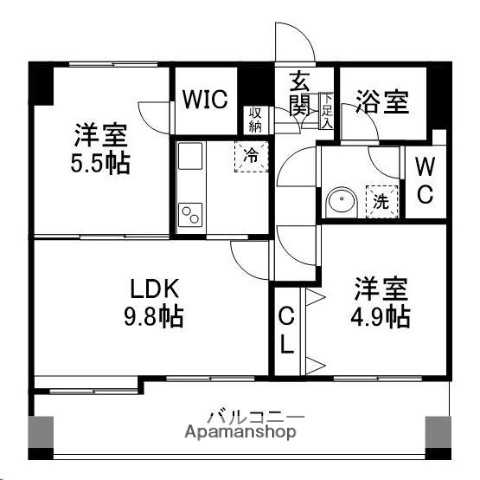 | 間取り詳細 | 洋5.5 洋4.9 LDK9.8 | 構造 | 鉄筋コン |