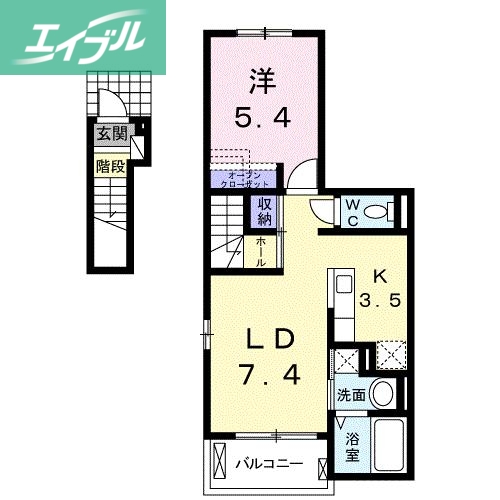 | 間取り詳細 | 洋5.4 LD7.4K3.5 | 構造 | 木造 |