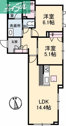 | 間取り詳細 | 洋6.1 洋5.1 LDK14.4 | 構造 | 軽量鉄骨 |