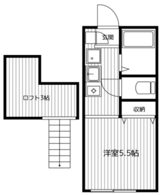 | 間取り詳細 | 洋5.5 ロフト 3 | 構造 | 木造 |