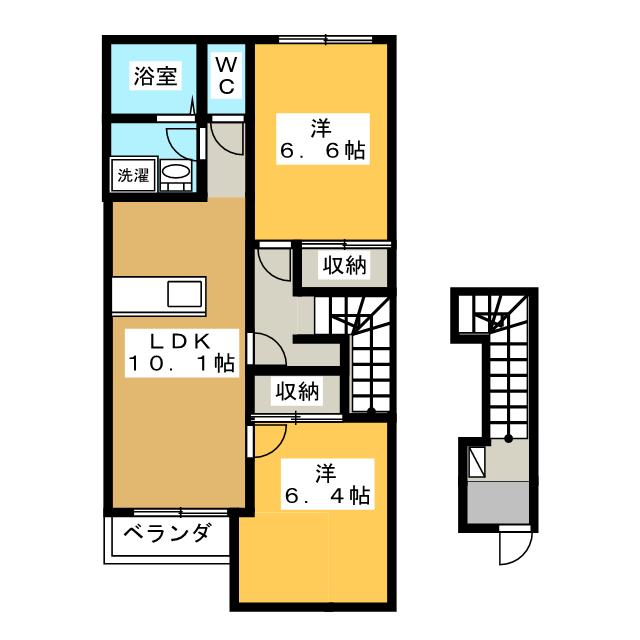 間取り詳細 洋6.6 洋6.4 LDK10.1 構造 木造