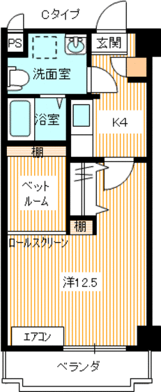 | 間取り詳細 | 洋12.5 K4 | 構造 | 鉄筋コン |