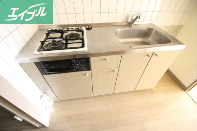 備前西市駅まで徒歩1分の場所にあるおすすめ物件。独立洗面台付き。2口ガスコンロ付きのシステムキッチン。