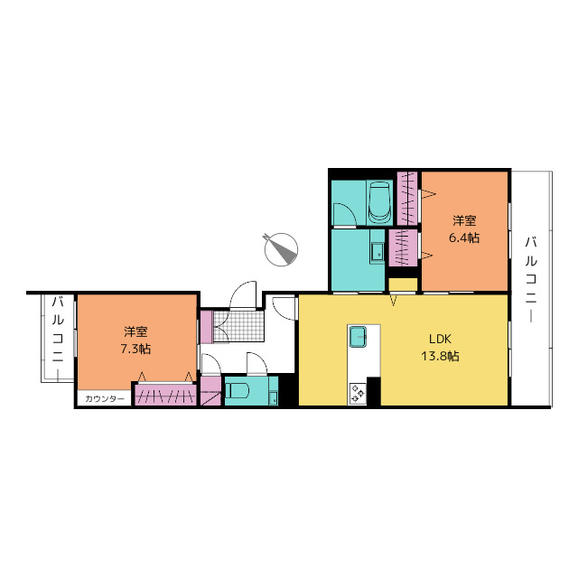 間取り詳細 洋7.3 洋6.4 LDK13.8 構造 鉄骨
