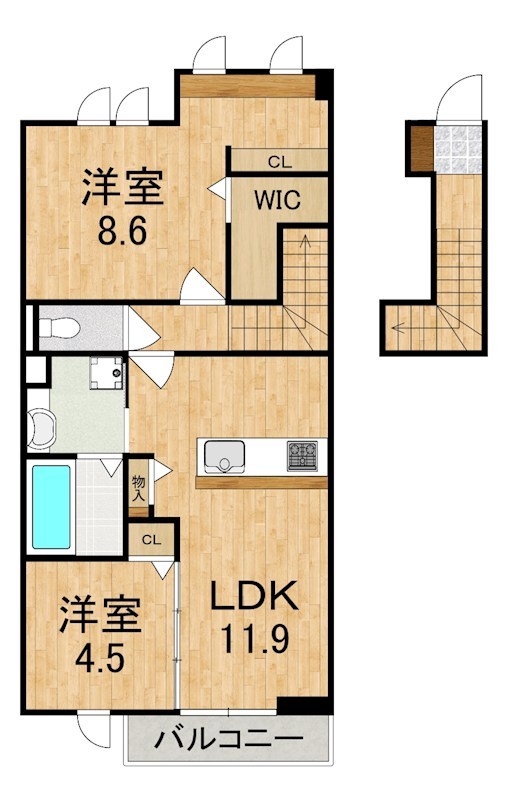 | 間取り詳細 | 洋8.6 洋4.5 LDK11.9 | 構造 | 軽量鉄骨 |