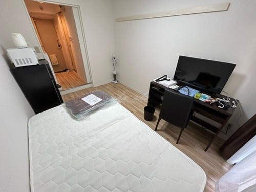 ポケットWi-Fi50/G/月無料貸出、テレビ、洗濯機(設置不可物件無し)、冷蔵庫、電子レンジ、掃除機、エアコン・照明・ベット・机・イス・カーテンなどの家具・家電付き。家具家電撤去相談(実費負担)