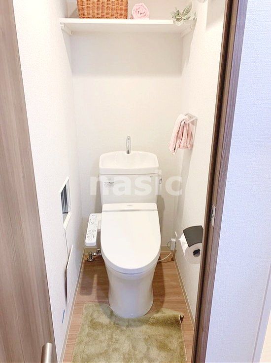 • バストイレ別、エアコン、フローリング、TVインターホン、オートロック、室内洗濯置、シューズボックス、南向き、角住戸、温水洗浄便座、エレベーター、洗面所独立、駐輪場、宅配ボックス、防犯カメラ、照明付、保証金不要