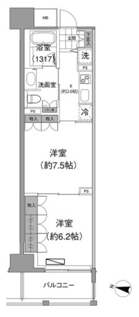 | 間取り詳細 | 洋7.5 洋6.2 K2.6 | 構造 | 鉄筋コン |