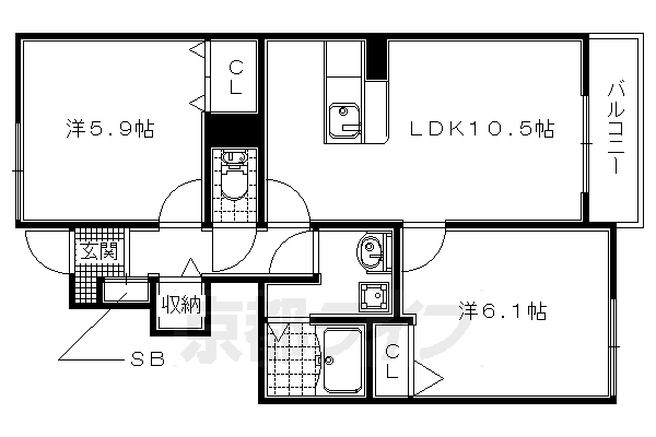 | 間取り詳細 | 洋6.1 洋5.9 LDK10.5 | 構造 | 木造 |