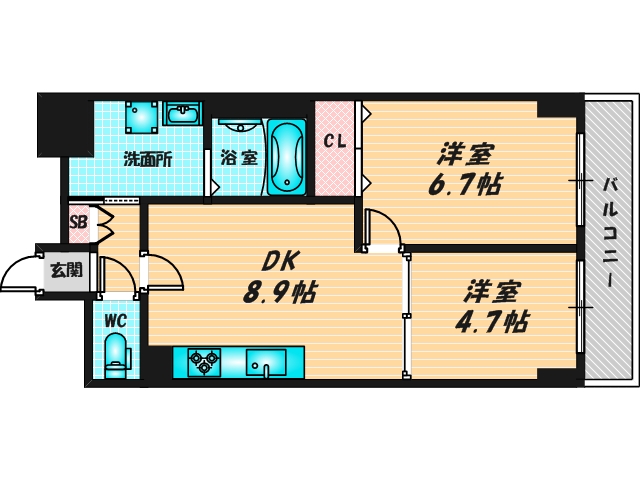 | 間取り詳細 | 洋6.7 洋4.7 DK8.9 | 構造 | 鉄筋コン |