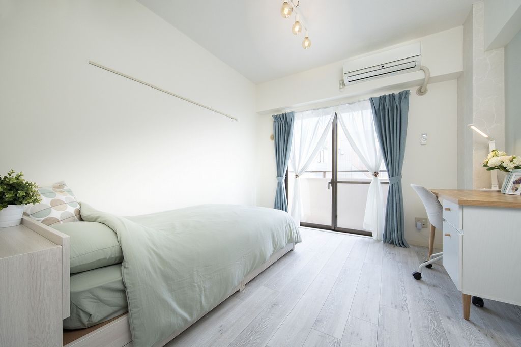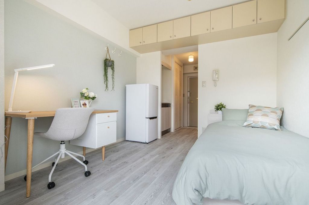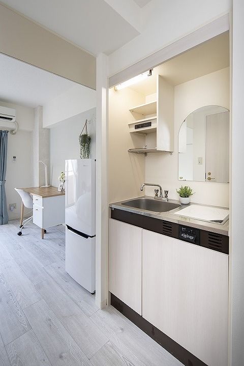 • バルコニー、エアコン、フローリング、オートロック、シューズボックス、温水洗浄便座、駐輪場、宅配ボックス、礼金不要、防犯カメラ、IHクッキングヒーター、照明付、冷蔵庫、保証金不要、都市ガス