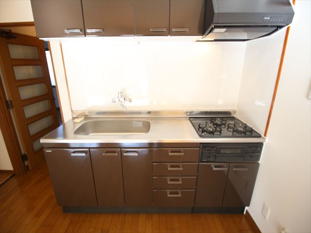 学生さんのルームシェアも可能な建物です(^^♪システムキッチンでコンロも3口付になります!オートロックも付いてますので女性のご入居でも安心です♪