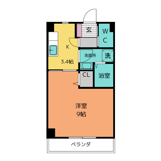 30平米ある広めのお部屋。共用玄関にはオートロック付き。