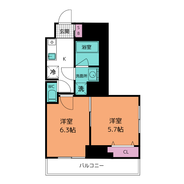 間取り詳細 洋6.3 洋5.7 K3 構造 鉄筋コン