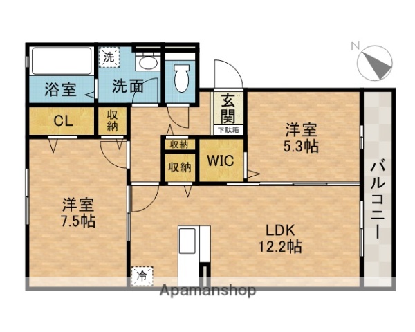 | 間取り詳細 | 洋7.5 洋5.3 LDK12.2 | 構造 | 軽量鉄骨 |