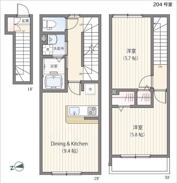 | 間取り詳細 | 洋5.8 洋5.7 | 構造 | 軽量鉄骨 |